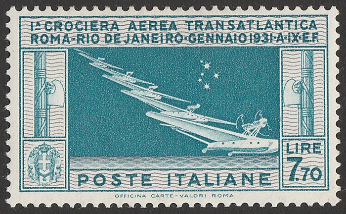 Flight 7.70L light blue & drab. VF fresh MNH. Scott C27 cat US$900, SG 303 cat £700 for M, should be at least double, £1400 MNH, Sass A25 cat €1100. 2023 Ceremuga photo cert. (P) (Image1)