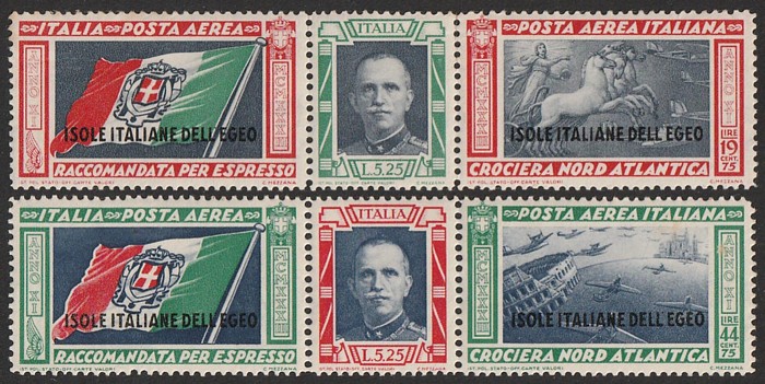Balbo Transatlantic Triptych set 5L25 + 19L75 & 5L25 + 44L75. VF MNH, sl tropicalised gum. SG 122-23 cat £200 for M, should be at least double, £400 MNH. Sass A28-29 cat €600. (2 strips) (P) (Image1)