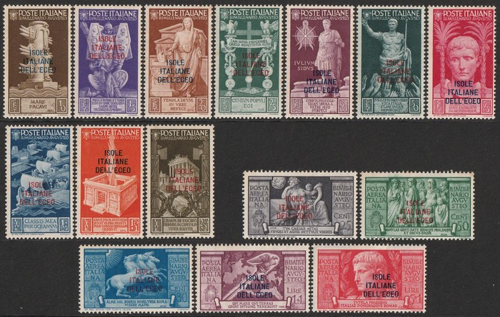 Augustus set 10c - 2L55 +2L, plus Airmail set 25c - 5L+1L. VF MNH, sl tropicalised gum. SG 186-200 cat £85 for M, should be at least double, £170 MNH. Sass 99-A51 cat €650. (15) (Image1)