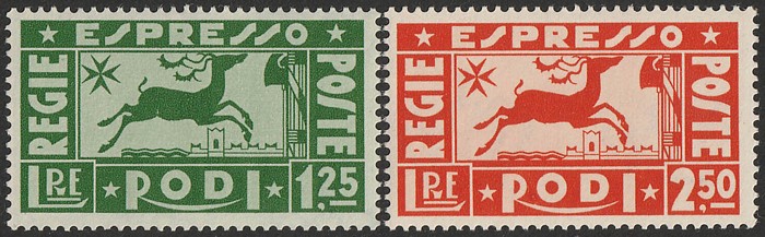 1935 Express set 1L25 green & 2L50 orange. VF fresh MNH. SG E184-85 cat £13 for M, should be at least double, £26 MNH. Sass E1-2 cat €75. (2) (Image1)