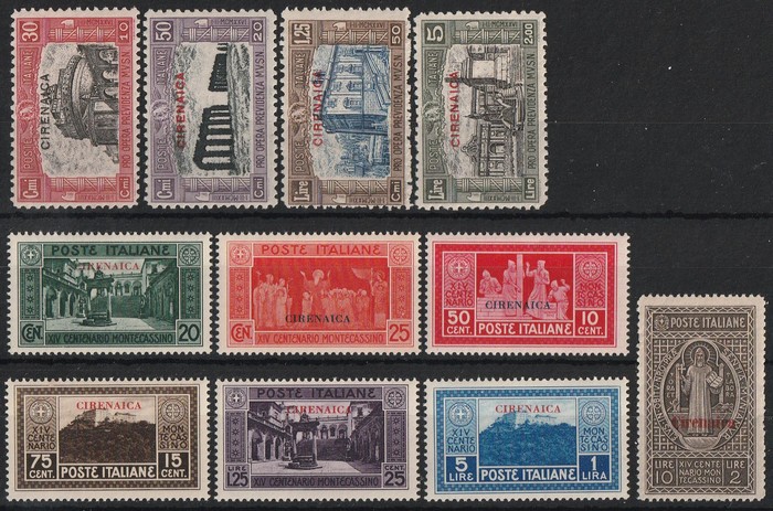 2nd National Defence set 30c+10c - 5L+2L, plus 1929 Monte Cassino set 20c - 10L+2L. VF MNH. SG 47-57 cat £101 for M, should be at least double, £202 MNH. Sass 49-59 cat €400. (11) (Image1)