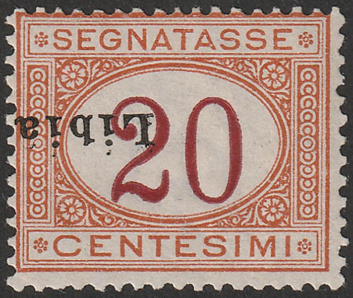 Postage Due 20c red & orange, error opt inverted. F-VF fresh MLH, almost MNH. SG 19b cat £600. Sass S3ba cat €800. Exp Enzo Diena AIEP. (P) (Image1)