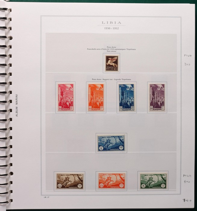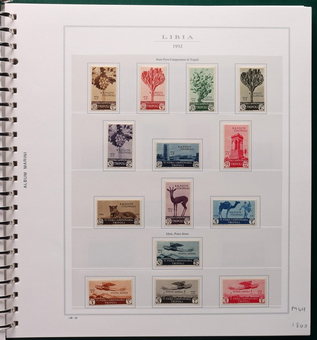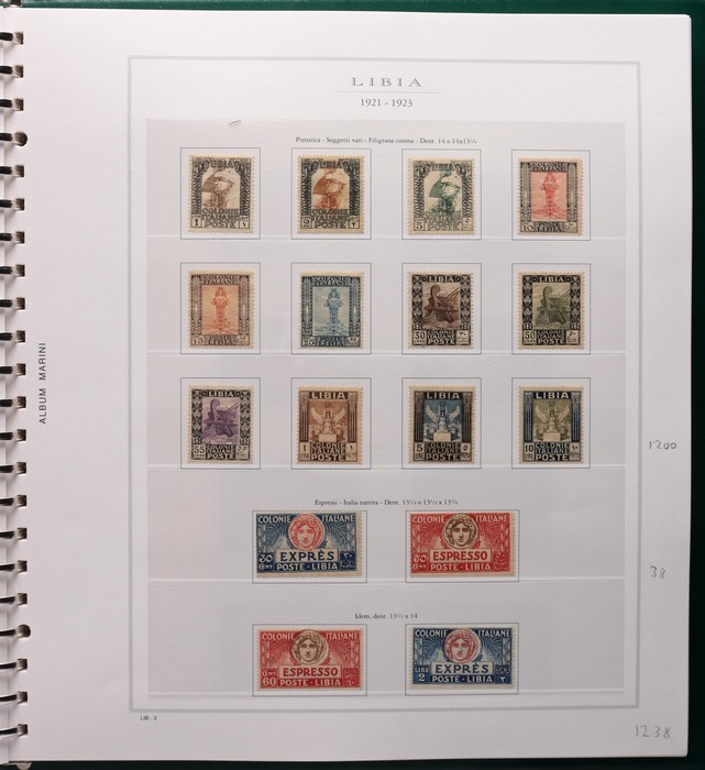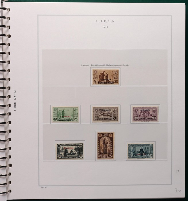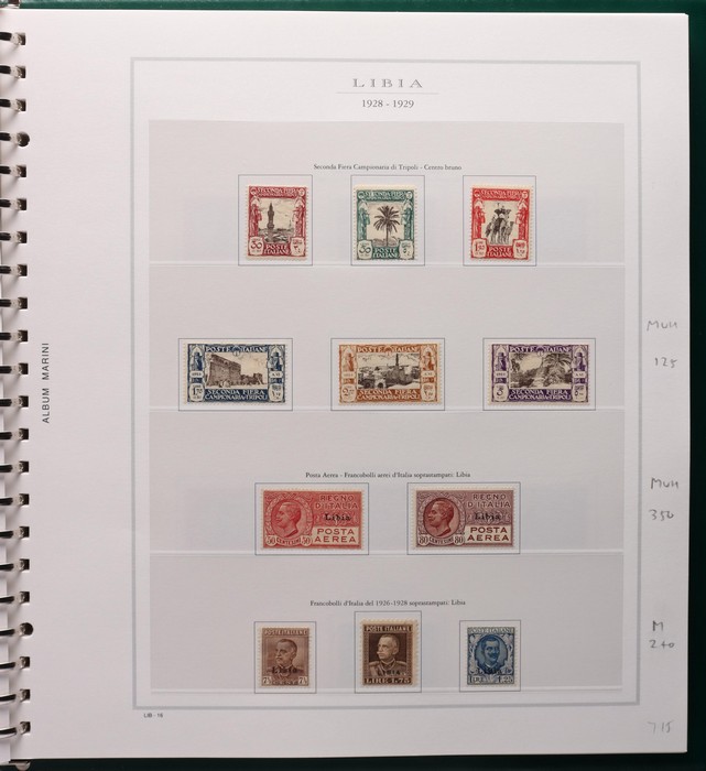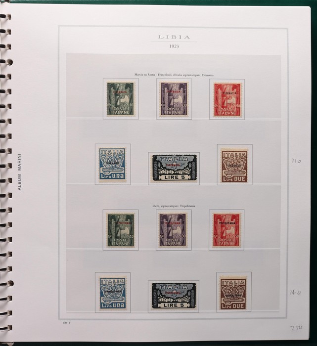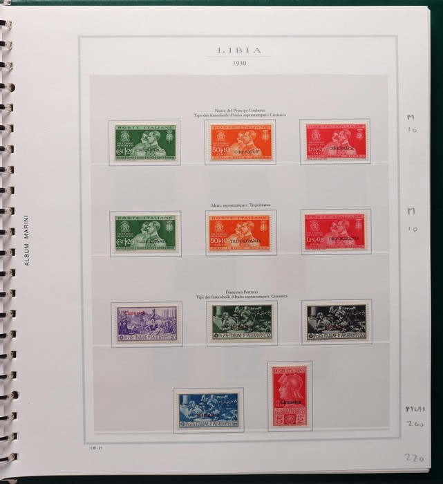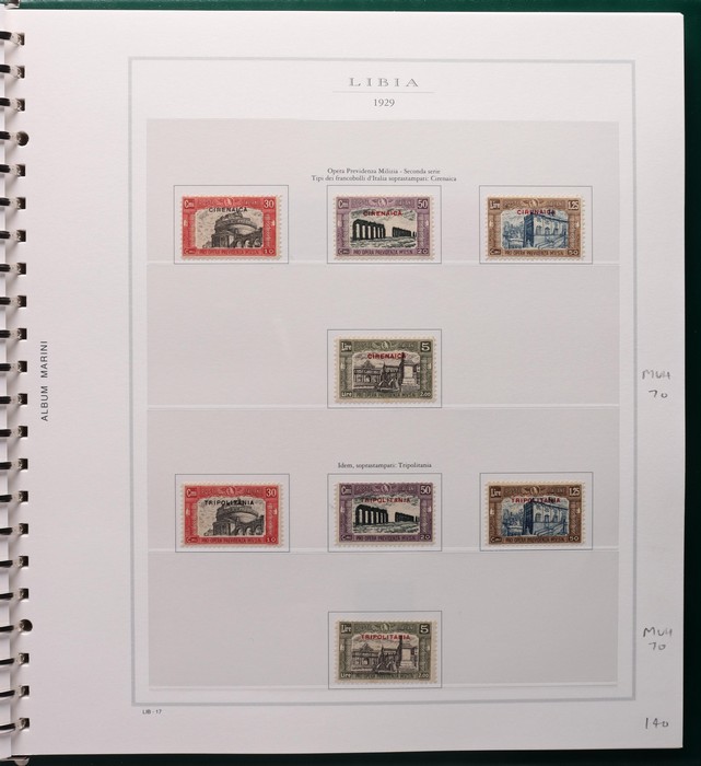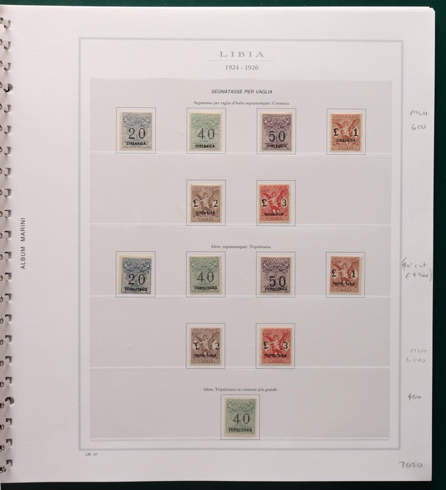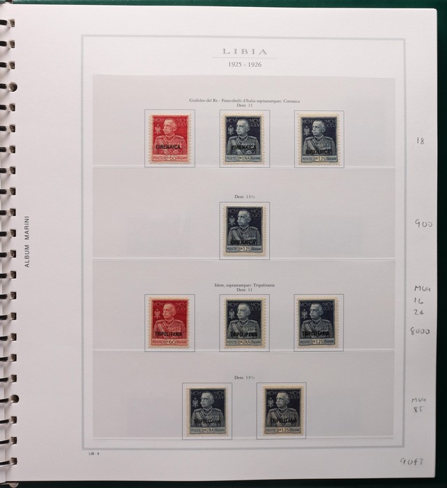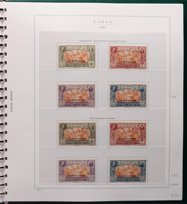 Cyrenaica & Tripolitania: 1912-41 collection in as new Marini slipcase hingeless album inc 1912-18 opt Kings (16, Mi cat €1600+), 1915-16 Red Cross set, 1921 Pic Def set to 10L (€1200), 1923 Propaganda Fide sets for Cyrenaica &