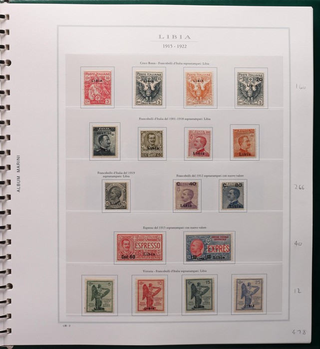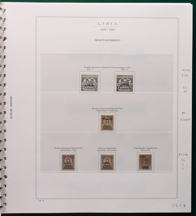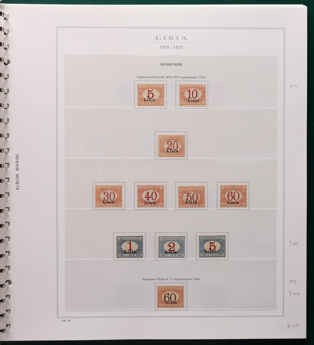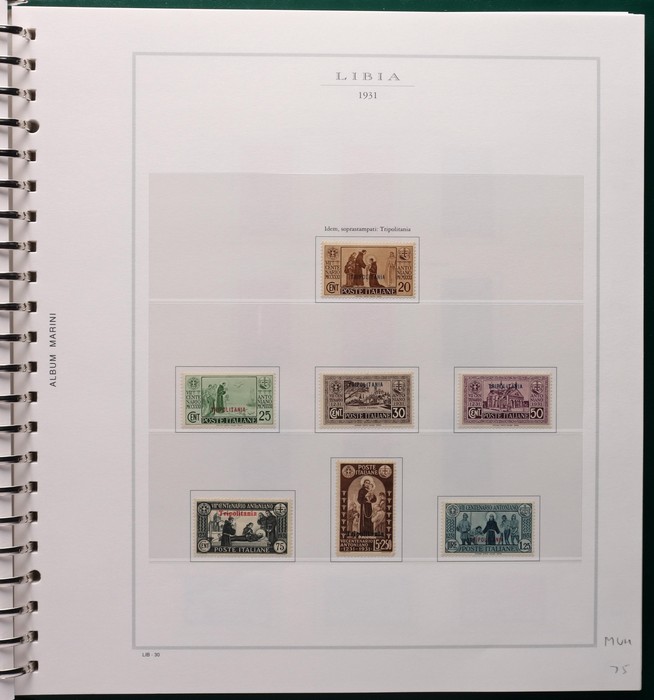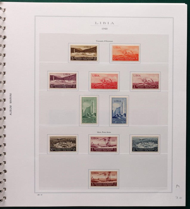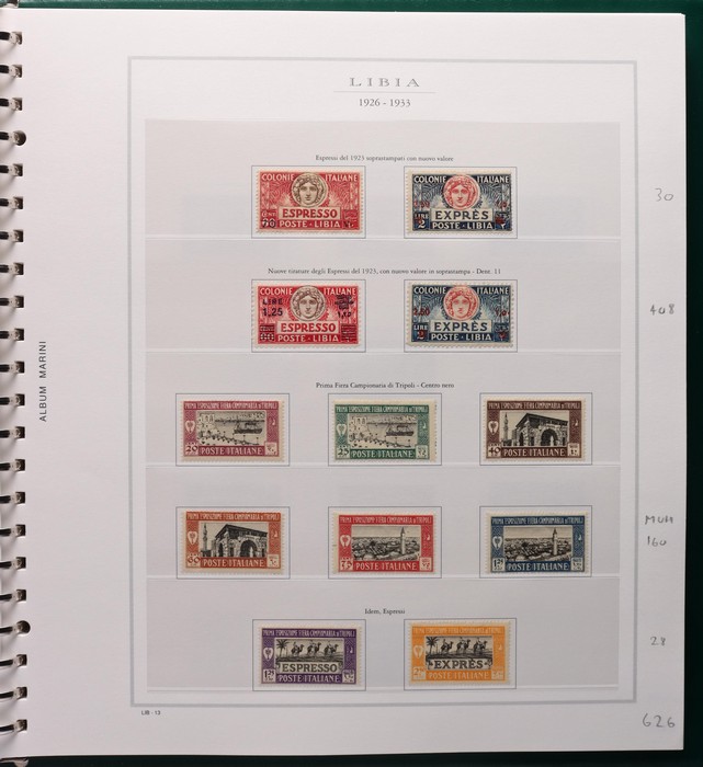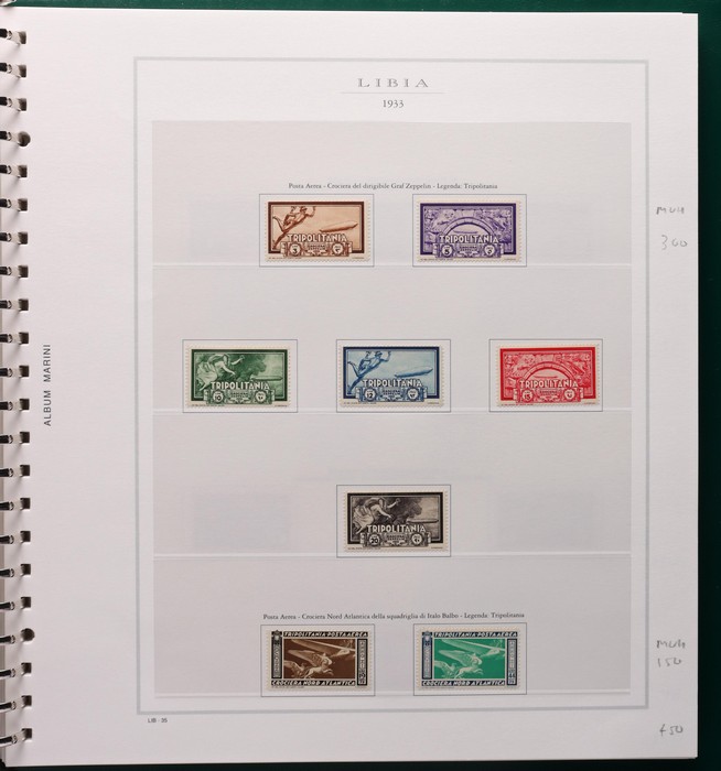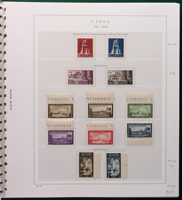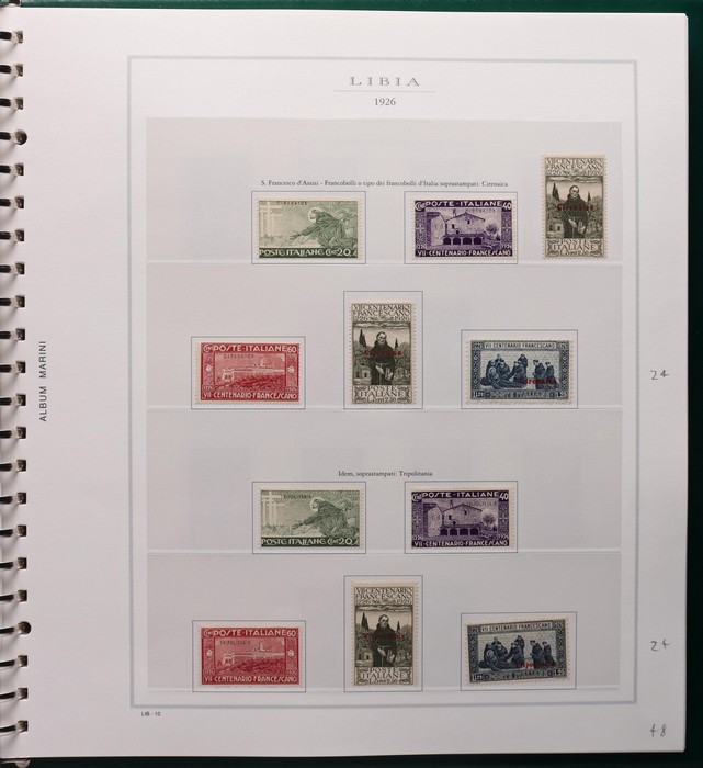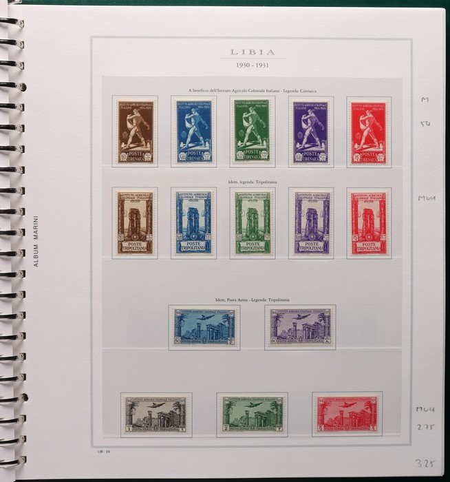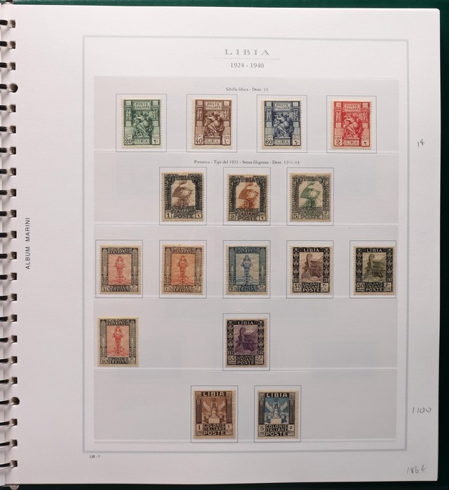 Cyrenaica & Tripolitania: 1912-41 collection in as new Marini slipcase hingeless album inc 1912-18 opt Kings (16, Mi cat €1600+), 1915-16 Red Cross set, 1921 Pic Def set to 10L (€1200), 1923 Propaganda Fide sets for Cyrenaica &