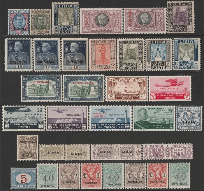 Postage Due sets for Cyrenaica MNH (€650) & Tripolitania MNH (€6000) inc 40c normal (€4700), & with larger lettering (€400). Also lots of Express opts. Generally VF fresh MLH/MNH, in far above usual quality with all items genuine
