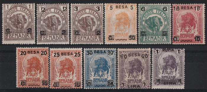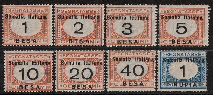Somalia: 1923-27 Express inc 1923 30b on 60c & 60b on 1L20, 1924 set 30b & 60b, 1926 Surch 70c on 30b & 2L50 on 60b, & 1927 1L25 on 30b. VF fresh MLH. SG E44-45, E60-61, E104-06 cat £240. Sass E1-7 cat €240. (7)