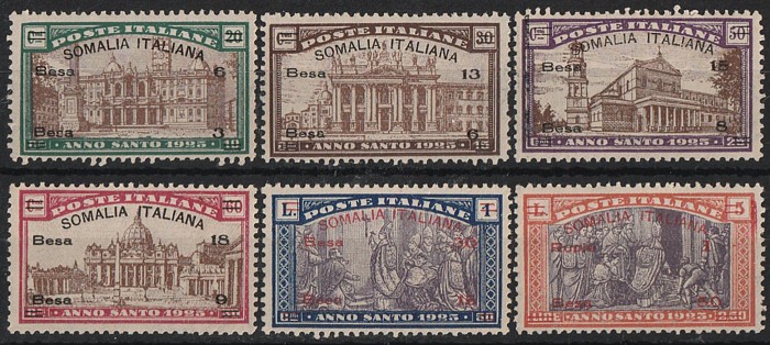 Holy Year set 6b+3b on 20c+10c - 1R+50b on 5L+2.50L. VF fresh MNH. SG 60-65 cat £27 for M, should be at least double, £54 MNH. Sass 61-66 cat €100. (6)