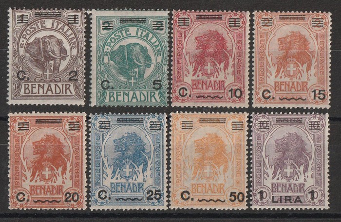 & Elephant Surch set 2c on 1b - 1L on 10a. VF fresh MLH. SG 68-75 cat £190. Sass 73-80 cat €200. (8) (Image1)