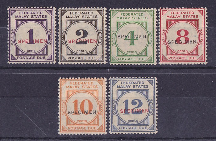Postage Due set 1c-12c, opt SPECIMEN. VF fresh M. SG D1s-D6s cat £250. (6) (P) (Image1)
