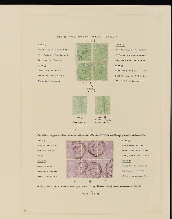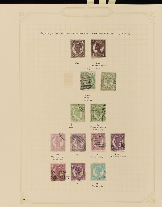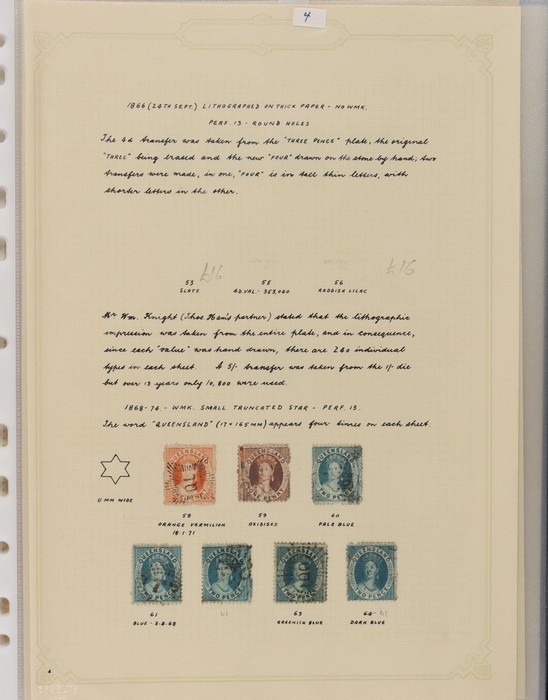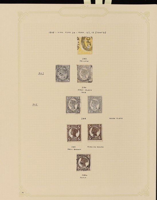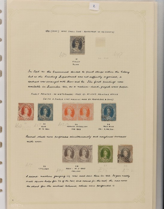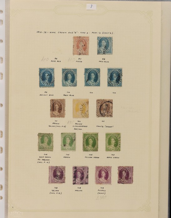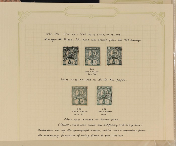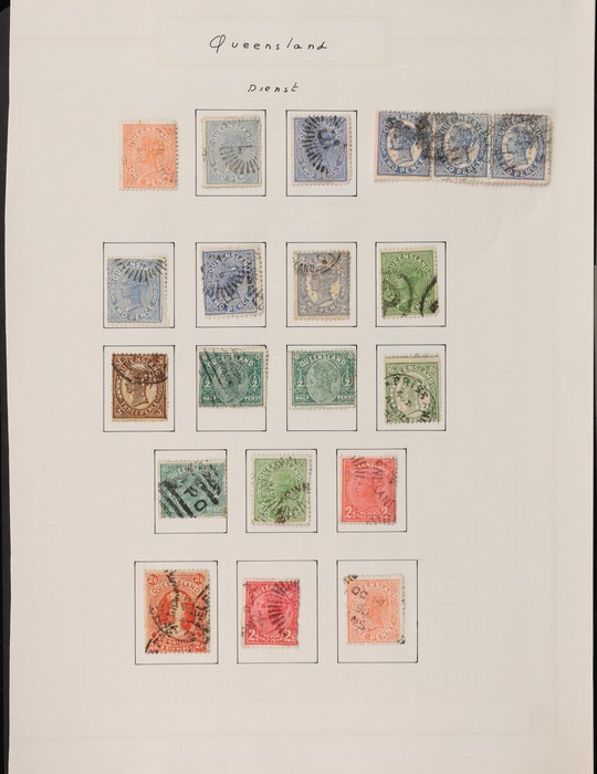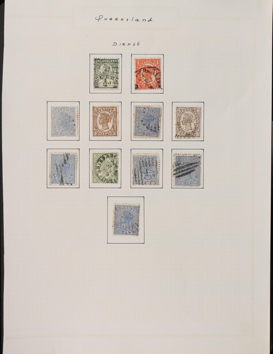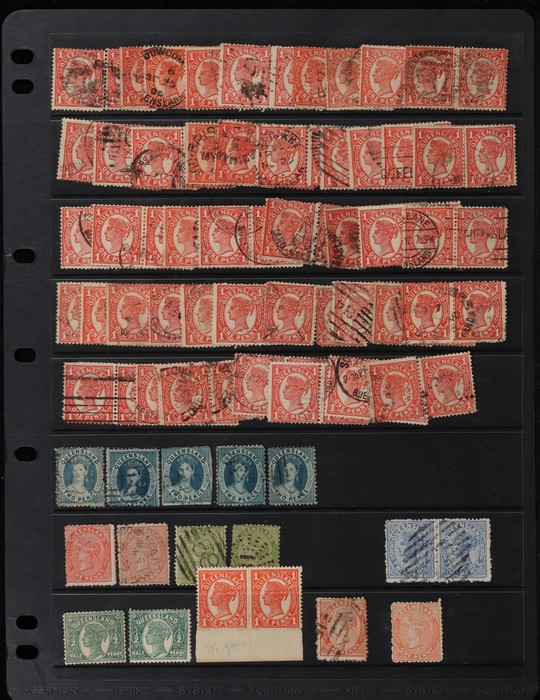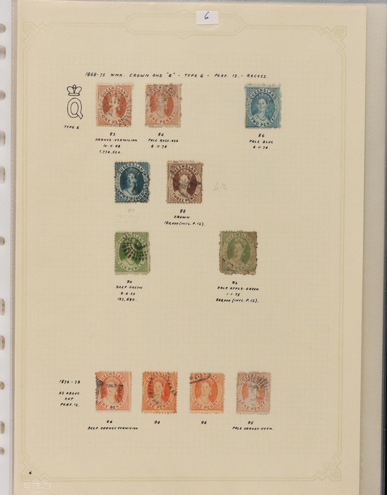 665 imageQueensland: 1860-1912 specialised collection on pgs with annotated notes inc varieties & shades inc 1860 QV Chalon 1d imperf. 1860-80 QV Chalons to 1/- laid out according to wmk & perfs with shades. 1879-80 QV 1st Sideface to 1/- inc types & shades. Annotated varieties. 1882-95 QV Large Chalon to £1 inc wmks. 1882-90 QV solid backgrounds to 1/-, plus shades & perfs. 1897-1907 QV 4 cnr numerals, to 2/- plus shades. Also useful selection of pmks inc usage in other states. Mostly G-VFU, odd M, some mixed. SG cat £4600+ = A$9000+. (725) (Image1) (Image2) (Image3) (Image4) (Image5) (Image6) (Image7) (Image8) (Image9) (Image10) (Image11) (Image12) (Image13) (Image14) (Image15) (Image16) (Image17) (Image18) (Image19) (Image20) (Image21) (Image22) (Image23) (Image24) (Image25)