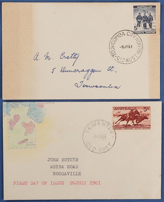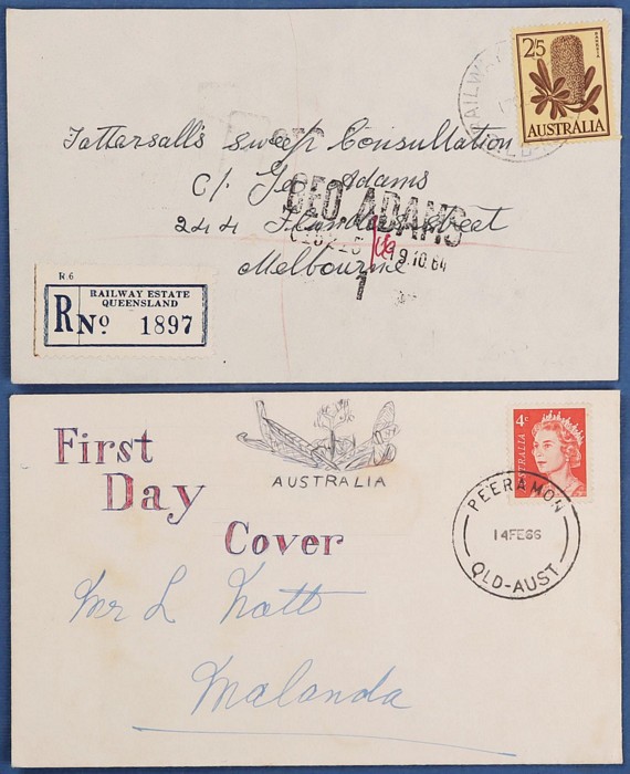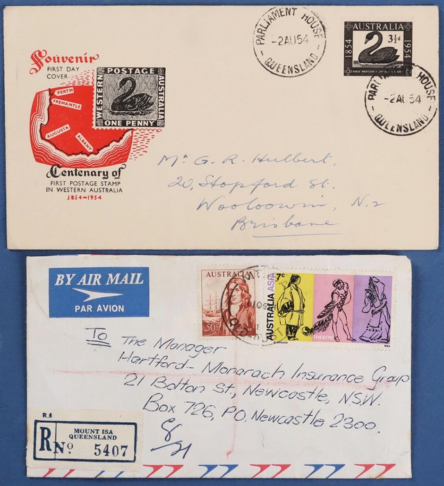 666 imageQueensland - Covers: Commonwealth era collection to mid 1980s with cancels, postmarks, usages etc with around 500 covers from over 130 diff POs inc Ashgrove West, Bororen, Camp Hill West, Delivery Counter/Brisbane, Depot Hill, Edge Hill, Elanora, Goose Ponds, Greenslopes Repat Hospital, Hivesville, Mena Creek, Peeramon, Pinkeneba, Railway Estate, Rockhampton North plus many others inc some Registered & a selection on 1970s-80s tourist destination pictorial envelopes. Neatly packed into 2 shoeboxes, F-VF condition. (Image1) (Image2) (Image3) (Image4) (Image5) (Image6) (Image7) (Image8) (Image9) (Image10) (Image11) (Image12) (Image13) (Image14) (Image15) (Image16) (Image17) (Image18) (Image19) (Image20) (Image21) (Image22) (Image23)