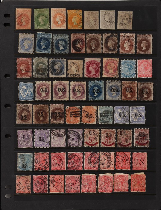 670 imageTasmania & South Australia: 1855-1912 collection/accumulation mostly on pgs inc 1855 QV Chalon 4d, imperf, wmk Large Star. 1857-67 QV Chalon vals to 6d, imperf. Useful range of Pictorials to 6d inc wmks, printings, perfs & shades plus a quantity of 1d inc pmks. Plus South Australia from 1855 QV 2d, imperf. 1858-68 QV to 1/- rouletted. 1868-1902 QV to 2/- perf. Useful range of OS & perf SA with a selection of 1d pmks. Victoria 1858 Queen on Throne 6d. Also Australia 1913-36 Kangaroo & KGV perf OS. Mostly G-VFU, usual mixed condition in parts. SG cat £890+. (430) (Image1) (Image2) (Image3) (Image4) (Image5) (Image6) (Image7) (Image8) (Image9) (Image10) (Image11) (Image12) (Image13) (Image14) (Image15) (Image16) (Image17)