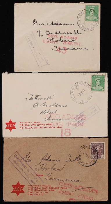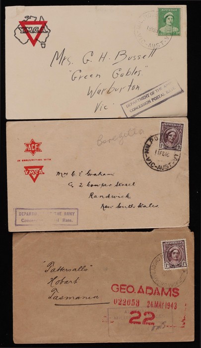 678 imageVictoria Military POs 1940s WW2 (about 4 post WW2), all diff cds on cover, highlights being very fine Torquay Mil PO (open 3 months only) & Air Force PO 30 of Frognall RAAF PO (WWW 3R, Proud 'Not Seen'), others inc Mil PO Darley, Fishermen's Bend, Seymour 1, 2, 3 (2), 5 & 17, RAAF PO Benalla, Sandridge (cover + RAAF 5219 on piece) also 6 covers with civil cds & military Battalion etc. (31). (Image1) (Image2) (Image3) (Image4) (Image5) (Image6) (Image7) (Image8) (Image9) (Image10) (Image11) (Image12) (Image13)