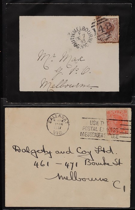 674 imageVictoria pmks on covers. Extensive part-collection, most from about 1930-2010 with a few earlier, commercial & philatelic covers, strength in later period, mostly letters Ce-Mi, Oa-Ox, RAAF-Rye, Ta-Wi, inc FDCs, FDI cancels, commem cancels, a few machine cancels, a few Paid, illustrated, reliefs, registered, many open/closing day covers, etc, some dupes, no great rarities seen but noted Corio North, Cowleys Ck, Crimea, Dookie Ag College (4), Drik Drik (3), Elizabeth St Stamp Kiosk 1 (4 R), Glenluce, Gre Gre North, Hawksburn SE2, Karawinna, Kooyong, Logan (2), Magpie (2), Nilma, fair 1940s oval Red Hill/Post Office, etc, also a very few pieces inc CIC Benalla (4R), CIC Mildura, Commerce House (2), poor to very fine, likely some rarities among the modern rubber types, (2000) (Image1) (Image2) (Image3) (Image4) (Image5) (Image6) (Image7) (Image8) (Image9) (Image10) (Image11) (Image12) (Image13) (Image14) (Image15) (Image16) (Image17) (Image18) (Image19) (Image20)