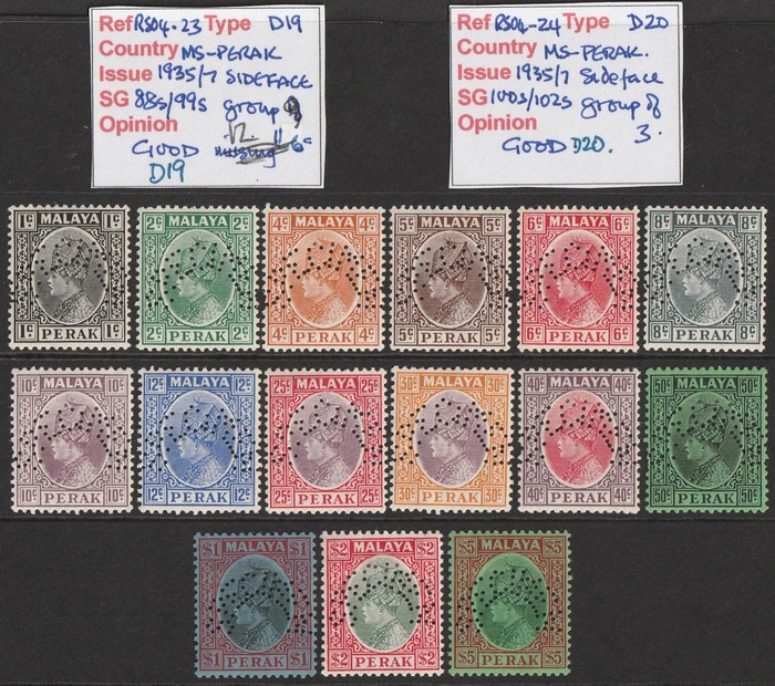 medium 'PERAK' opt QV Revenue 3c-50c & $2, opt 12x2¼mm. Mostly F-VF F/C. Bft ex 9-14. (5) (P) (Image1)