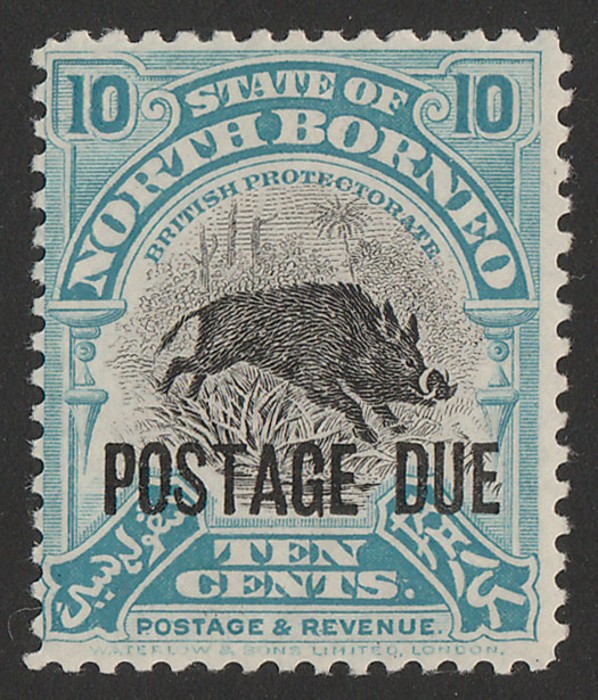 opt Wild Boar 10c black & turquoise-blue, perf 12½. VF fresh MNH. SG D72 cat £23 for M, should be at least double, £46 MNH. (Image1)
