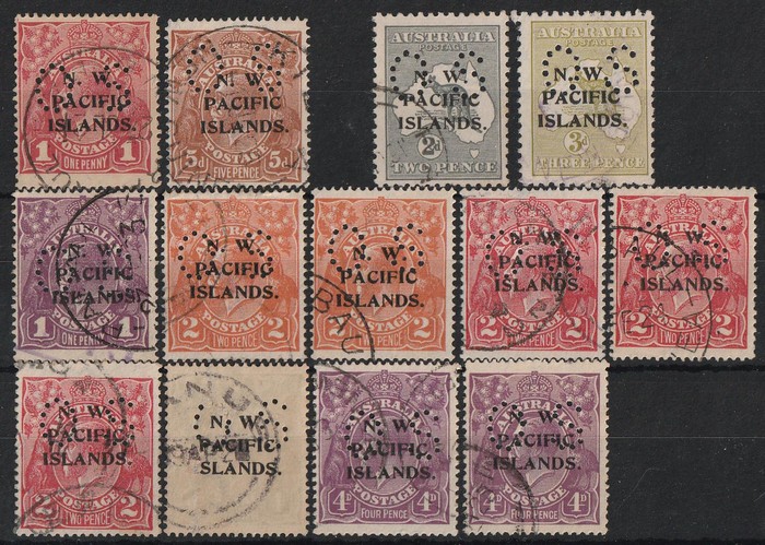 Kangaroo & KGV perf OS, with Roos 2d & 3d, KGV 1d-5d. Mostly F-VFU, range of cds. SG cat £1000+. All genuine & scarce group. (13) (P) (Image1)