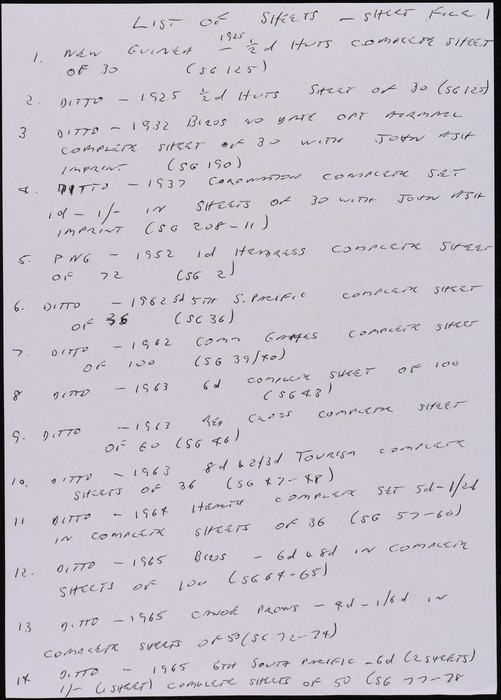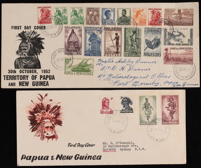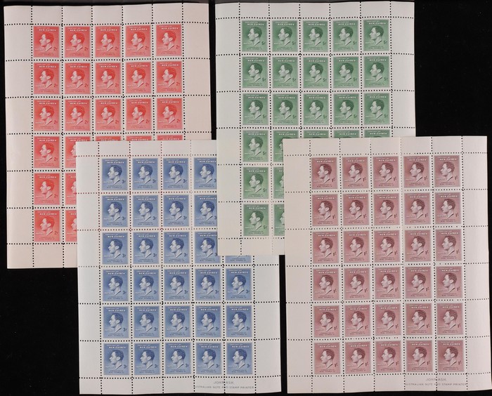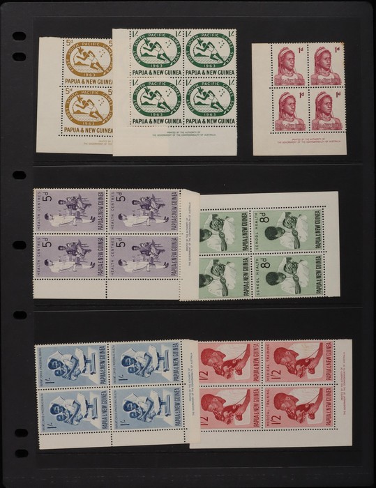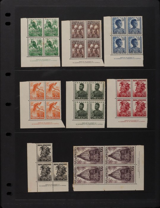 sheets ranging in size from 30-100 stamps in 2 sheet files, commences with 1925 ½d New Guinea Huts (2), ½d Birds Airmail & comp set of 1937 Coronation values, then PNG range from 1952-2000 inc 1961 5d Legislative Council (sheet of 100),