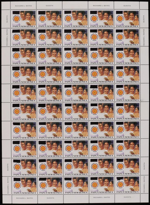 opt rectangles but only 2 opt '50t'. Superb MNH. Mi 906DDD, SG 904(var) est cat £2400+ based on others. Extremely rare, only 1 sheet of 50 was discovered so only 4 imprint blocks exist. 2004 Ceremuga AIEP photo cert (4) (P) (Image1) (Image2)