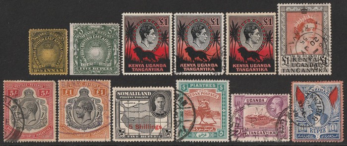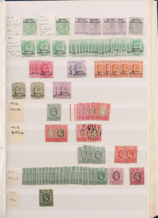 747 imageBritish East Africa 1890s-1980s collection/accumulation in 3 s/books inc BEA 1890-95 range to 5R, 1896 to 4R, East Africa & Uganda 1907 KEVII to 75c. Kenya & Uganda 1922 KGV to 2/-, KUT 1938-54 specialist KGV collection shades & perfs (700+) to £1 M & U, 1954 QEII to £1, Tanganyika 1922 to 10/- & 1922 to £1 (some Fiscal), Zanzibar 1896-1950s, Somaliland Protectorate 1903-1950s, other countries Sudan & Zanzibar, range of post independence issues 1960s-80s for all above countries. Duplication, suit specialist. Some flts, mainly G-VFU, about 20% F-VF MLH, few MNH. SG est cat £5000+ = A$10,000+. Extensive collection with mainly earlies. (4000+) (Image1) (Image2) (Image3) (Image4) (Image5) (Image6) (Image7) (Image8) (Image9) (Image10) (Image11) (Image12) (Image13) (Image14) (Image15) (Image16) (Image17) (Image18) (Image19) (Image20) (Image21) (Image22) (Image23) (Image24) (Image25) (Image26) (Image27) (Image28) (Image29) (Image30) (Image31) (Image32) (Image33) (Image34) (Image35)