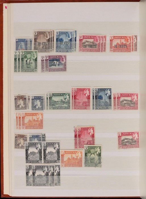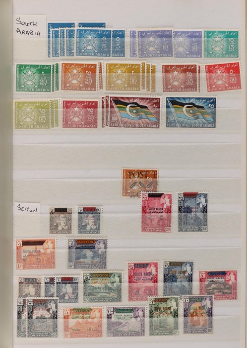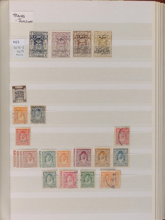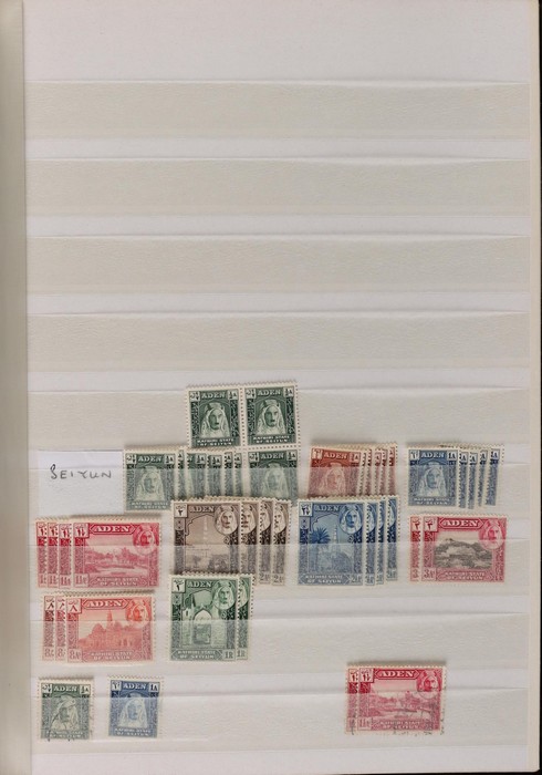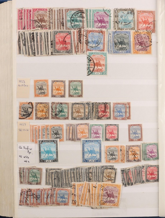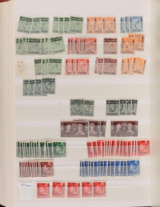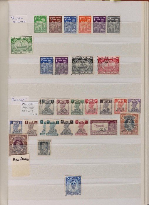 751 imageBritish Middle East 1900-70s collection/accumulation in Lighthouse s/book & stock pages in binder inc Aden 1937 to 2R, 1953 to 10/- various states to 2R, Bahrain, British Levant, Middle East Forces, Eritrea, Somalia, Tripolitania, Kuwait, with UK issues opt, Trucial States 1961 to 5R, Muscat 1944 Indian issues opt to 2R, Transjordan 1923 to 5p, 1929 Postage Due set, Morocco Agencies (heavily duplicated) to 50M, Palestine, Egypt & Iraq. Very extensive specialised, duplicated accumulation of Morocco Agencies inc opt on Gibraltar & UK stamps noted 1914-31 Seahorse 2/6 opt (2). Mainly G-VFU, about 30% fresh F-VF MLH/MNH. SG est cat £2000+ = A$4000+. (5000+) (Image1) (Image2) (Image3) (Image4) (Image5) (Image6) (Image7) (Image8) (Image9) (Image10) (Image11) (Image12) (Image13) (Image14) (Image15) (Image16) (Image17) (Image18) (Image19) (Image20) (Image21) (Image22) (Image23) (Image24) (Image25) (Image26) (Image27) (Image28) (Image29) (Image30) (Image31)