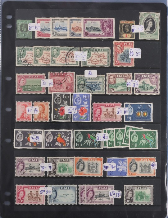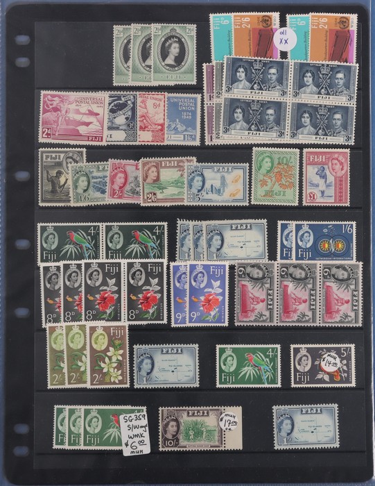 756 imageBritish Pacific Islands accumulations & collection in carton with Fiji 1912-80 inc 1938-55 to 5/- M with extras, 1954 to £1 MNH, 1959-67 to £1, 1969 Defs MNH & many others cat £600+, Nauru collection 1954-80s mostly MNH inc late 1970s-80s in packs, sheets FV $490. New Zealand collection 1882-1978 inc 1898 Pics to 9d, later 1930s issues & sets, retail $540. Solomon Is collection 1981-85 MNH sets & M/S with extras cat £100+. Largely VF. (700+, 30+) (Image1) (Image2) (Image3) (Image4) (Image5)