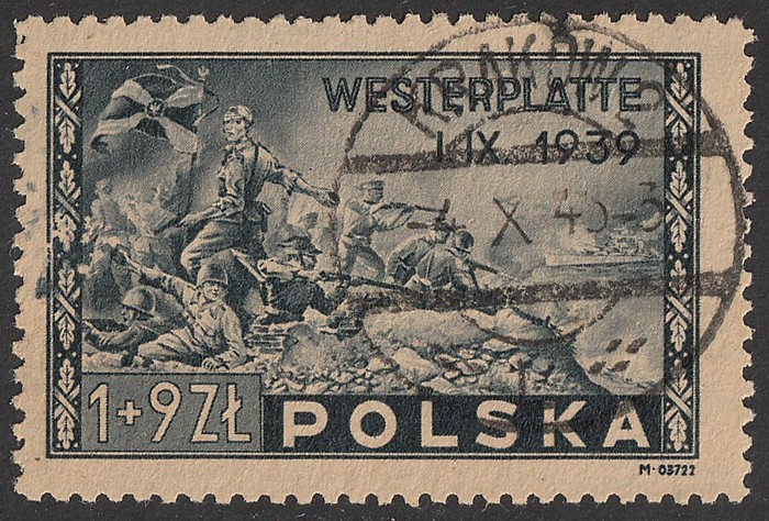 Anniv 1+9zl slate. Superb U, 'Krakow 4.X.45' cds. SG 535 cat £55+. Mi 407 cat €70+. Scarce genuine used. Exp Ceremuga AIEP. (Image1)