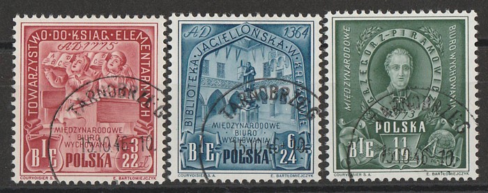 Bureau of Education set 3+22zl -11+19zl. VF U/CTO, 'Tarnobrzeg 15 10 46' cds. Mi 445-447 cat €260, SG 571a-c cat £300. (3) (Image1)