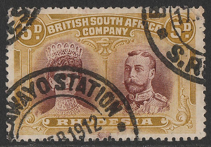 Head 5d purple-brown & ochre, ERROR OF COLOUR, perf 14. VFU, Bulawayo Station 1912 cds. Scott 107a cat US$165, SG 141ab cat £150. (P) (Image1)