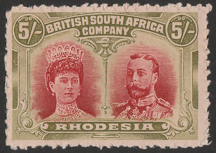 Head 5/- scarlet & pale olive-green, unofficially rouletted as made from IMPERF proof sheet. VF fresh MLH. SG 160(var), normal cat £350. (P) (Image1)