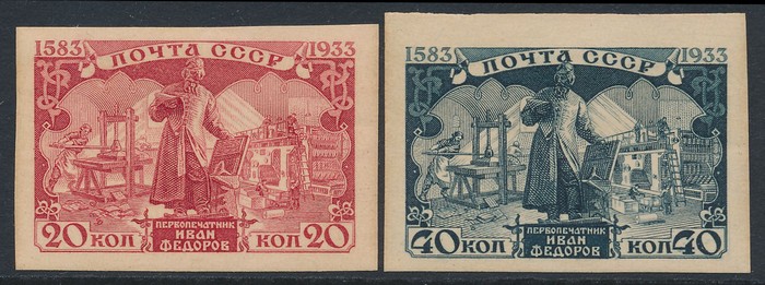 set 20k & 40k, IMPERF. Superb M, 4 large margins. Scott 529a-30a. SG 653-54(var). Mi 472U-73U cat €3400. Rare, only several sheets of 50 printed of which many were CTO. 2024 Ceremuga photo-cert. (2) (Image1) (Image2)