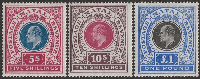 10/- & £1 wmk crown CC. VF fresh MLH. Scott 94-96 cat US$548. SG 140-142 cat £555. (3). (P) (Image1)
