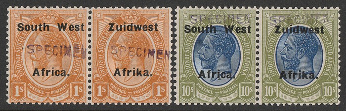 grey-blue, both English & Afrikaans opt & both perf, h/s SPECIMEN. VFM. SG 48s cat £140 as singles. (2) (P) (Image1)