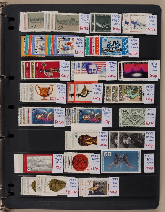 833 Germany 1976-2003 Collection in album & loose inc many unsorted new issues through period, all MNH with extras. Also 1989 Bundesrepublik 40th Anniv collection of sets & covers inc 1989 10mk PNC. A useful collection, mostly VF with post Euro period MNH. FV €285 = A$470. (many 100s)