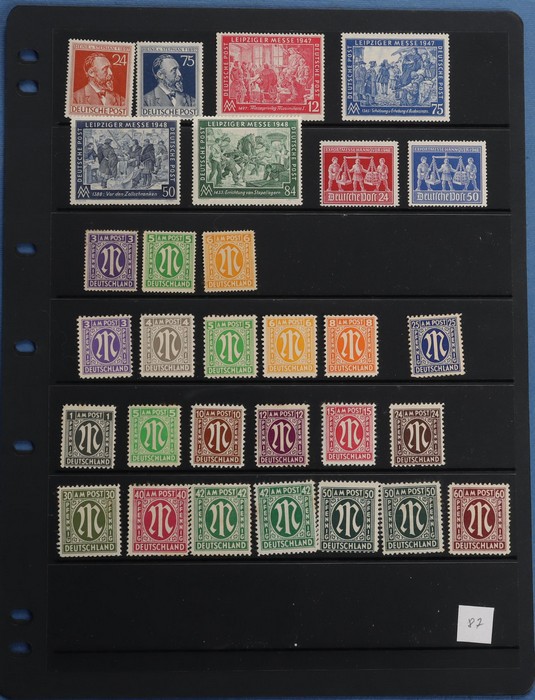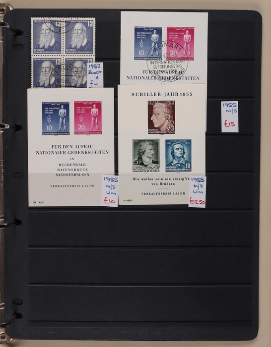 834 imageGermany: 1945-80s collection in 4 albums, on hagners & s/books inc 1945 Allied Occupation issues, 1949 Hanover M/S (cat £450), Berlin 1948 black opts to 2M, 1949 red opts to 1M, 1949 Refugees set, 1951-53 Freedom Bell sets in 3 positions, West Germany to 1980s many comp sets, mostly diff. Mint collection on hagners, East German Mint sets on stockcards. Mainly F-VF M/MNH/U. SG cat £8300 = A$16,000. (2400 + 30 M/S) (Image1) (Image2) (Image3) (Image4) (Image5) (Image6) (Image7) (Image8) (Image9) (Image10) (Image11) (Image12) (Image13) (Image14) (Image15) (Image16) (Image17) (Image18) (Image19) (Image20) (Image21)