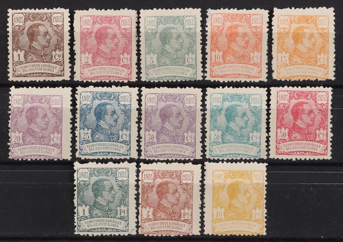 'GUINEA 1911' in oval h/s King set 1c-10P 20c & 10P dots instead of '1911' (type II). VF fresh M/MLH. Sc 102-114(var) cat US$147++. SG 114-126 (footnote) cat £170++. Ed 72-84 inc 77A & 84A cat €545+ rare, only 500 printed of the 10P. (13).