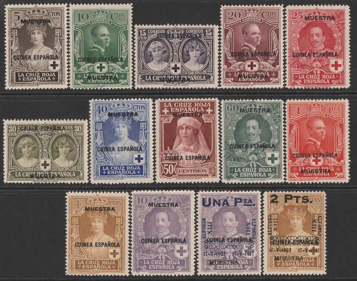Queen & Porter set 1c-5P opt MUESTRA (Specimen) with control no A000,000 at back. VF fresh M. Sc 222-233 cat US$69+. SG 244s -257s cat £200+ both for normals, plus premium for specimens. Ed 202M-215M cat €158. (14). (P) (Image1)