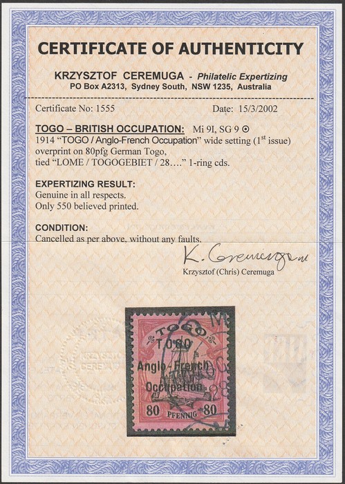 Get Market Data for [Togo (British) H9] Visual Pricing Guide Sample Census