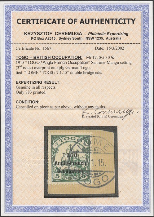 Get Market Data for [Togo (British) H46] Visual Pricing Guide Sample Census