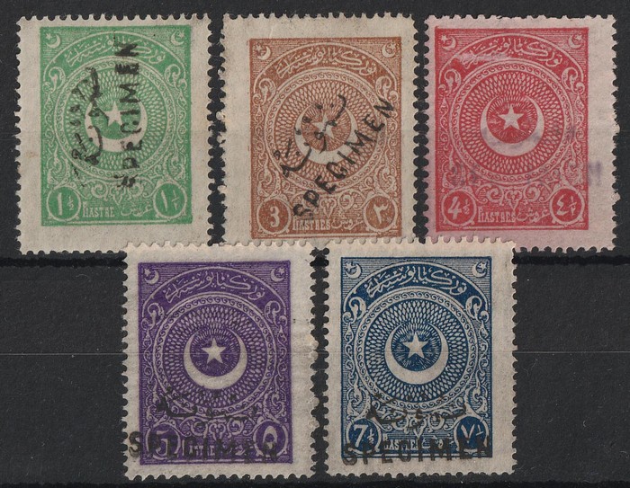 Crescent ½Pi, 3Pi, 4½Pi, 5Pi & 7½Pi, perf 13½, all h/s SPECIMEN. VF UN. Mi ex 810-816(s). SG ex 977-987(s). (5) (Image1)