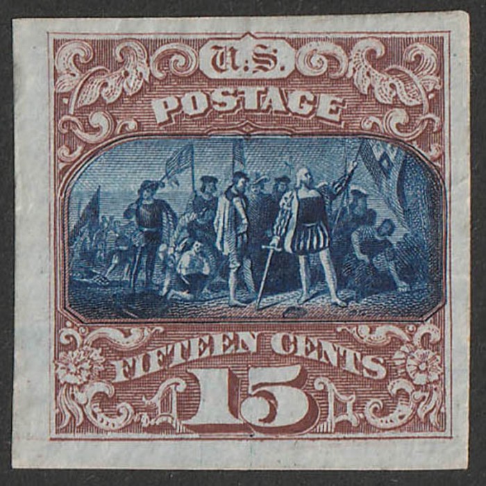 Columbus 15c brown & blue, type I. FU. Sc 118 cat US$900. SG 120 cat £750. (P) (Image1)
