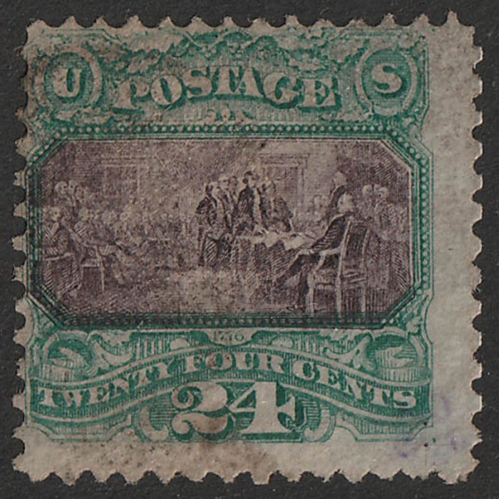 Independence 24c green & violet. VFU. Sc 120 cat US$650. SG 122 cat £700. (P) (Image1)