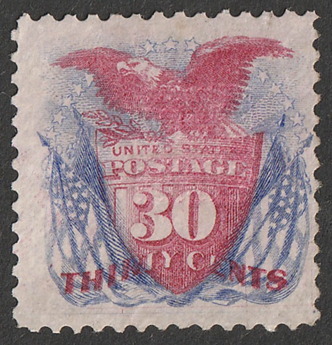 & Flags 30c ultramarine & carmine. F-VF U, red pmk. Sc 121 cat US$700. SG 123 cat £500. (P) (Image1)