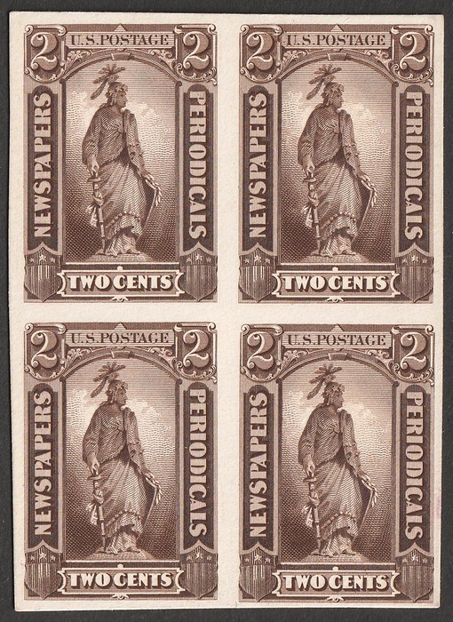 Periodical 2c brown blk of 4, trial colour proofs on thin card, imperf, instead of black issued colour, for Atlanta Exhibition. Superb UN as made, all 4 margins. SG N180(p) cat £1100 as normals. Sc PR9TC4c cat US$160+ (normals cat US$1400).