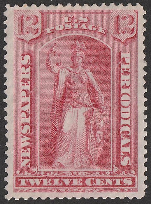 Periodical 12c rose, Continental printing on hard paper. Superb UN, excellent centring. SG N187 cat £800. Sc PR16 cat US$325 for UN, or US$800 for M. (P) (Image1)