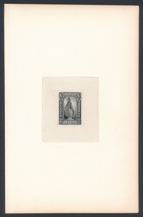 Periodical 4c black, large DIE PROOF on India paper on card (145x225mm), imperf, in issued colour. Superb UN as made, 4 margins. SG N182(p) cat £225 as normal. Sc PR11P1 cat US$100+ (normal cat US$350). (Image1)