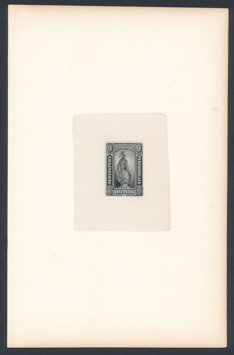 Periodical 9c black, large DIE PROOF on India paper on card (145x225mm), imperf, in issued colour. Superb UN as made, 4 margins. SG N185(p) cat £475 as normal. Sc PR14P1 cat US$100+ (normal cat US$600). (Image1)