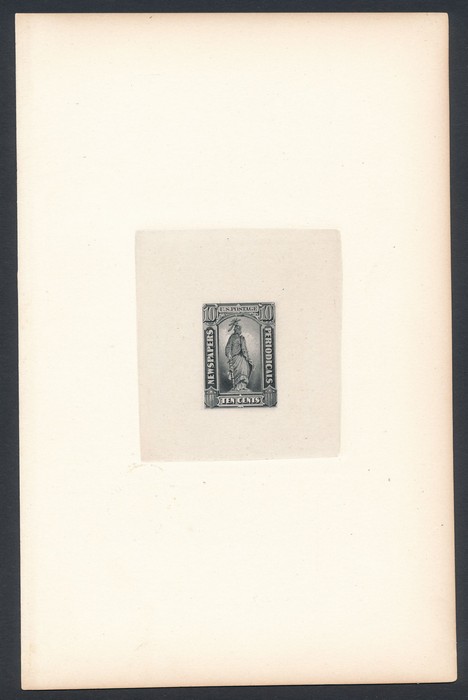 Periodical 10c black, large DIE PROOF on India paper on card (145x226mm), imperf, in issued colour. Superb UN as made, 4 margins. SG N186(p) cat £350 as normal. Sc PR15P1 cat US$100+ (normal cat US$375). (Image1)