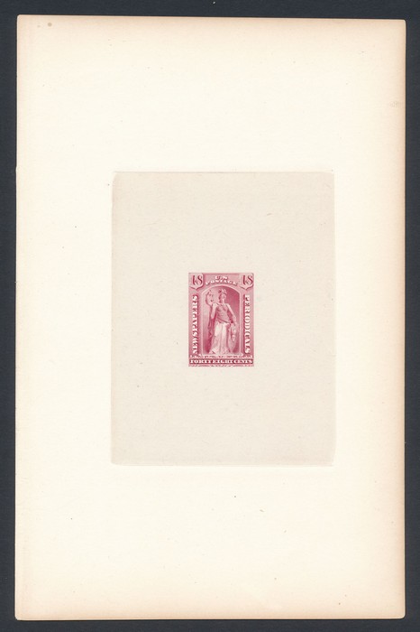 Periodical 48c rose, large DIE PROOF on India paper on card (145x225mm), imperf, in issued colour. Superb UN as made, 4 margins. SG N190(p) cat £1300 as normal. Sc PR19P1 cat US$100+ (normal cat US$1250). (Image1)