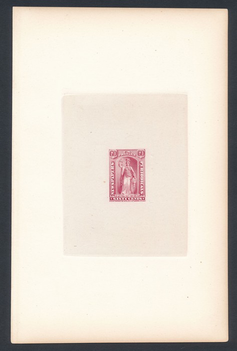 Periodical 60c rose, large DIE PROOF on India paper on card (145x225mm), imperf, in issued colour. Superb UN as made, 4 margins. SG N191(p) cat £1300 as normal. Sc PR20P1 cat US$100+ (normal cat US$1500). (Image1)